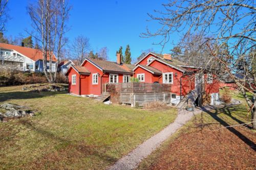 Charmig villa i soligt läge på Munkholmen i Sigtuna, med stor trädgård, flera fungerande eldstäder